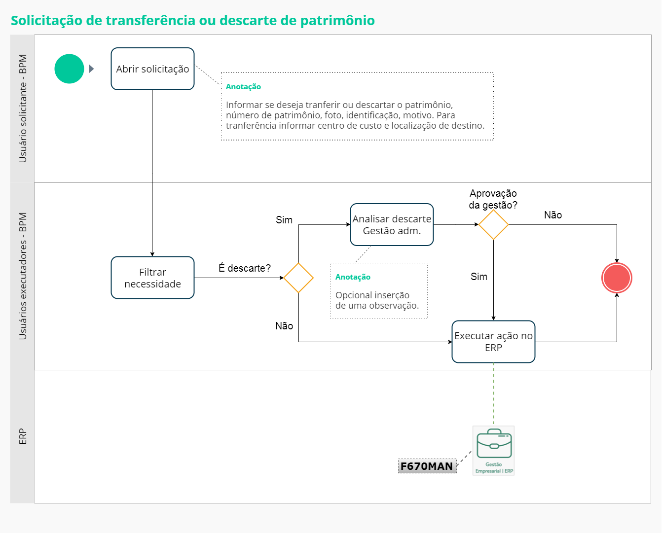 | Cancelamento de pedido | Solicitação de Transferência ou descarte de patrimônio | Priorização de Pedido | ||