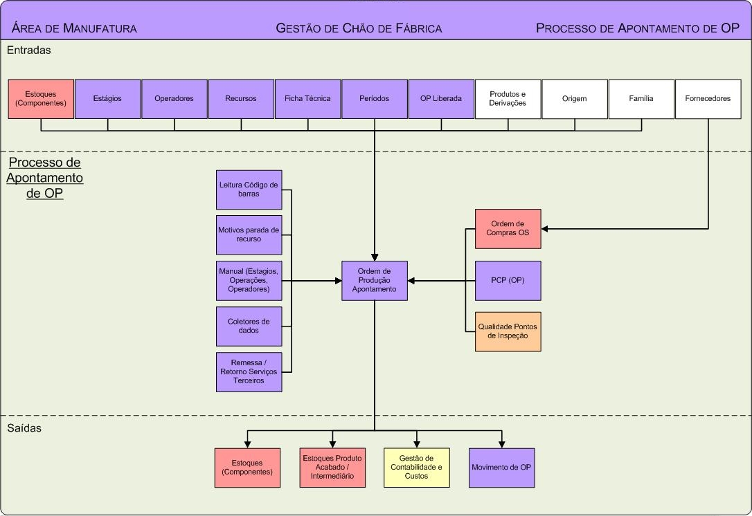 Ajuda por telas > Manufatura > Gestão de Chão de Fábrica > Fluxograma_ChaoFabrica_ApontamentoOP Para analisar o fluxograma por área e gestão clique aqui.