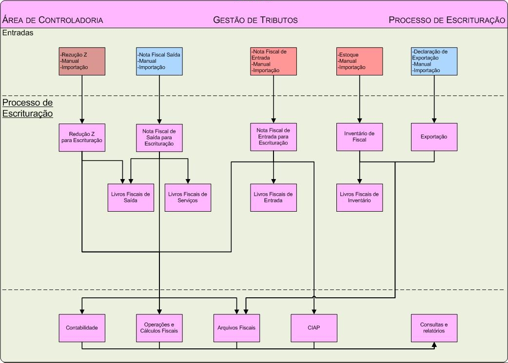 Ajuda por telas > Controladoria > Gestão de Tributos > Fluxograma_Tributos_Escrituracao Para analisar o fluxograma por área e gestão clique aqui.