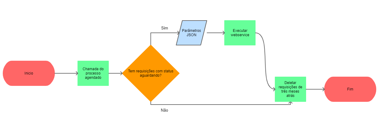 É de extrema importância que os parâmetros enviados no JSON representem uma requisição única. Caso seja enviada uma requisição com parâmetros e valores IGUAIS, e exista uma requisição com os mesmos parâmetros na fila para envio, o sistema cancelará a requisição anterior e executará apenas a última que foi enviada.