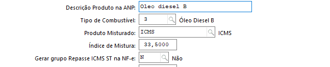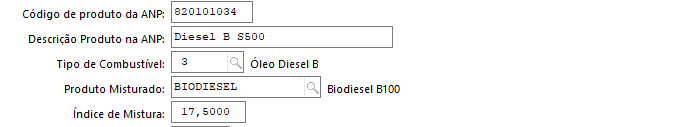 - O produto deve ter Tipo de Combustível, Índice de Mistura e Produto Misturado preenchidos em Cadastro de Produtos (F075PRO)