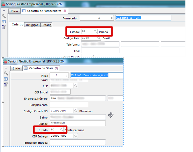 Por padrão, a alíquota é atribuída nas definições por estado. É possível definir uma alíquota específica para contribuintes e não contribuintes e para entradas e saídas. Esta alíquota é definida por estado e por filial. Ao incluir os itens nos documentos fiscais, o sistema verifica qual é a unidade fiscal do cliente/fornecedor e o código da filial onde a nota está sendo emitida e faz a busca da alíquota.