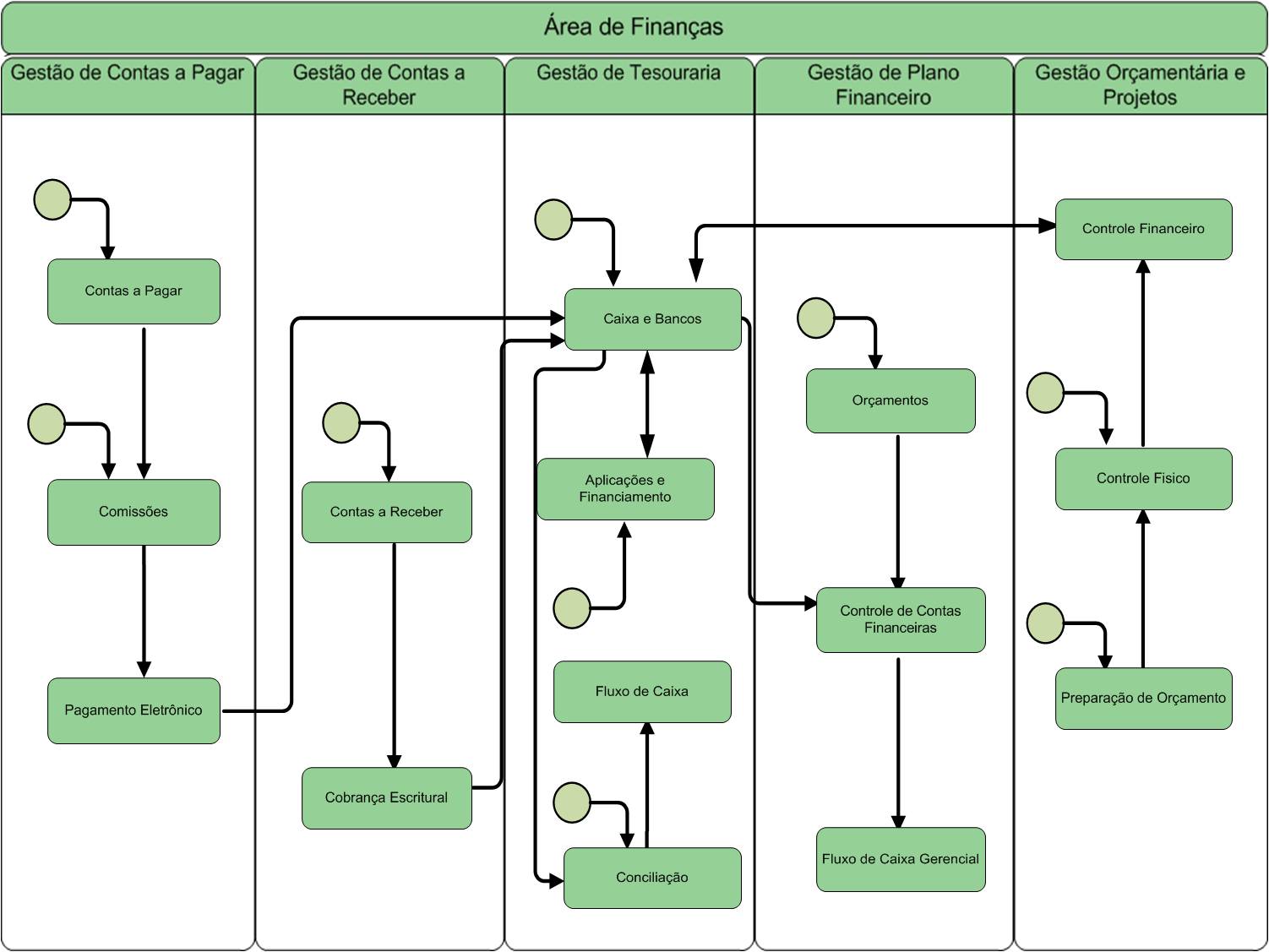 Para o ERP a área de Finanças controla:
