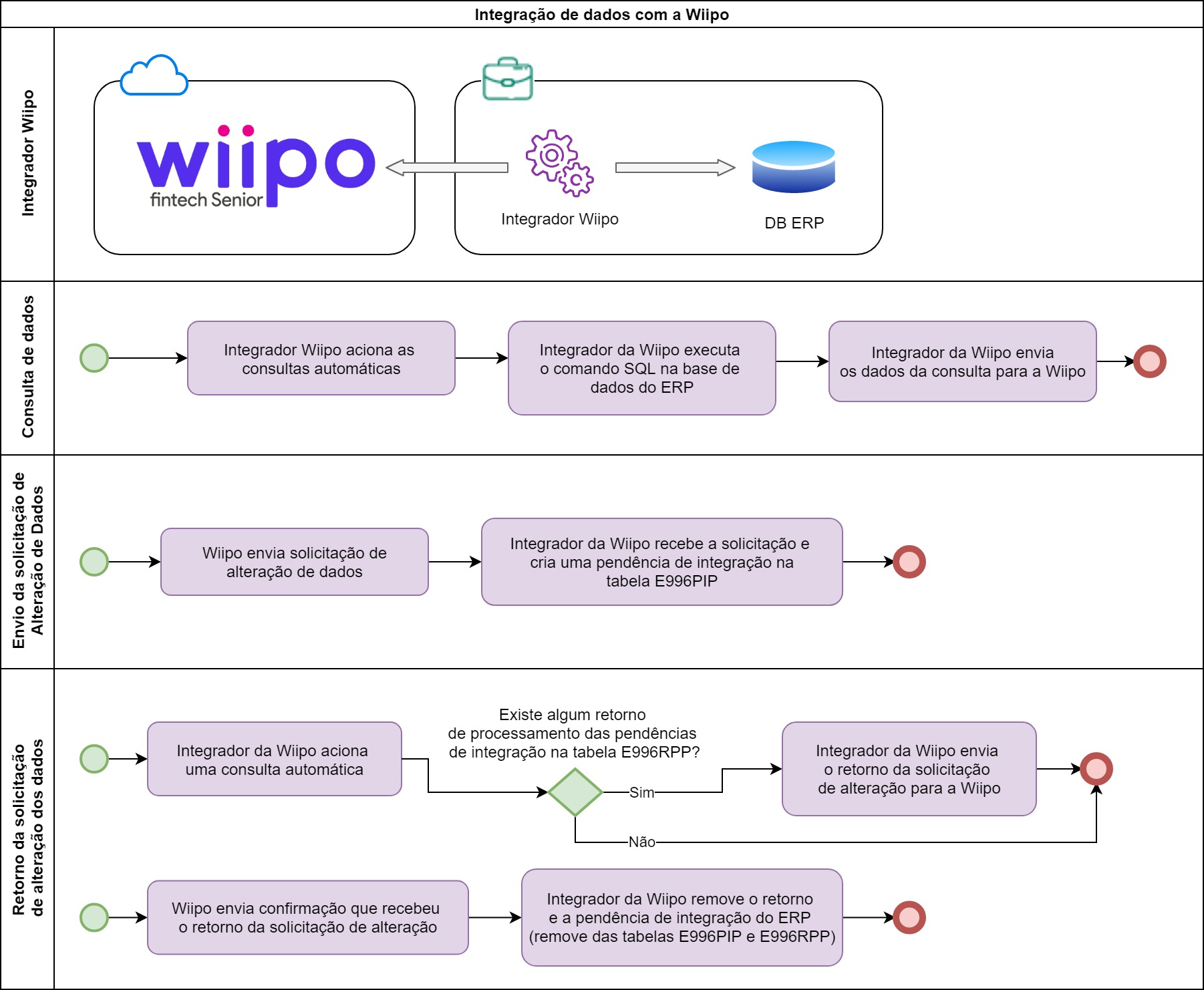 Esta página trata dos detalhes técnicos da integração ERP x wiipo para diagnóstico de problemas. Verificar Gestão de recebíveis - wiipo.
