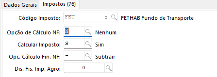 - Realize a parametrização dos Impostos Agro para os quais deseja realizar o cálculo da retenção;