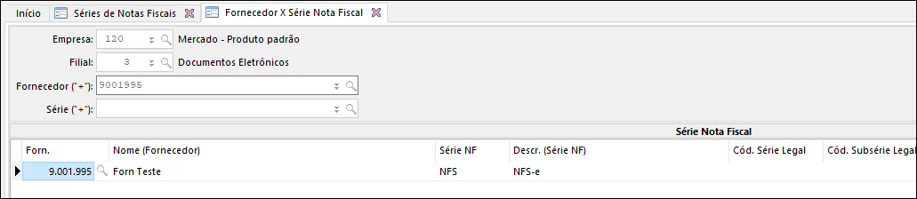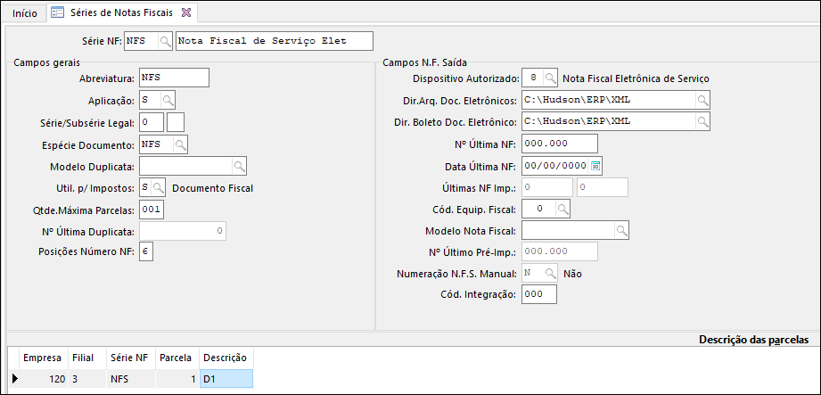 Sugestão da série Cadastre uma Espécie de Documento (F032EDC) com o código NFS (ver observação) e ligue-a ao cadastro de uma Série de Documento Fiscal (F020SNF)