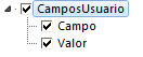 • Alguns campos são exibidos agrupados e nesses casos é possível selecionar só os campos desejados ou marcar todos que estão no agrupamento clicando no agrupador: