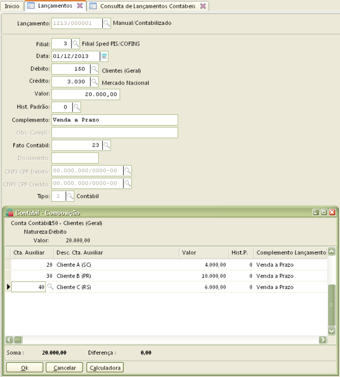 Lançamento Contábil Sintético com Utilização de Conta Auxiliar