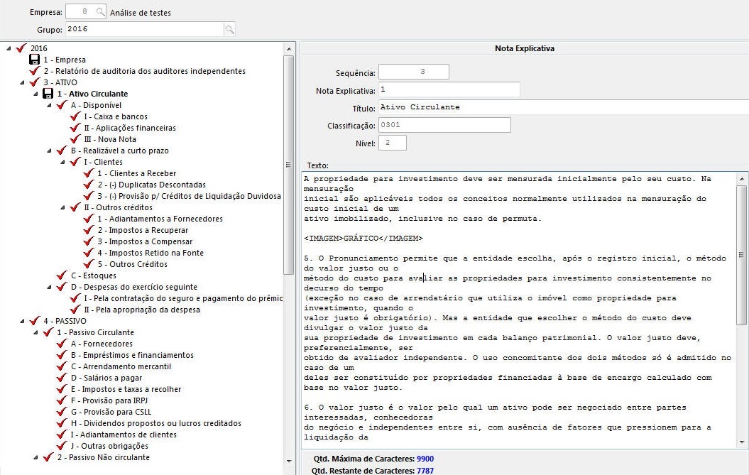 Neste campo deve-se informar o texto correspondente a nota explicativa, detalhando as informações necessárias da demonstração vinculada.