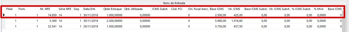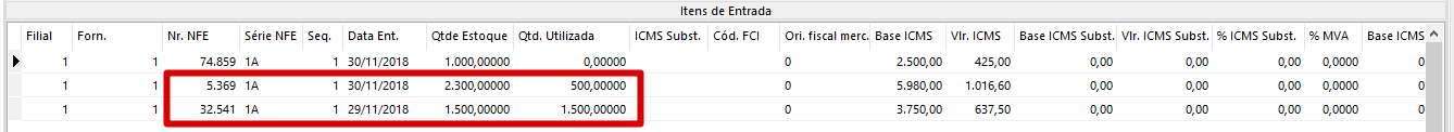 Após isso, todas as notas fiscais de entrada geradas para os produtos controlados pelo PEPS irão gerar um registro de entrada na tela de Manutenção de Controle de Entrada de Produtos.