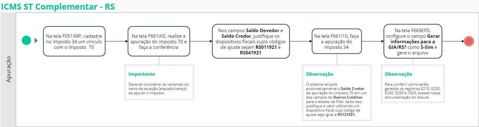 Apuração do imposto tipo 70 - ICMS ST Complementar: