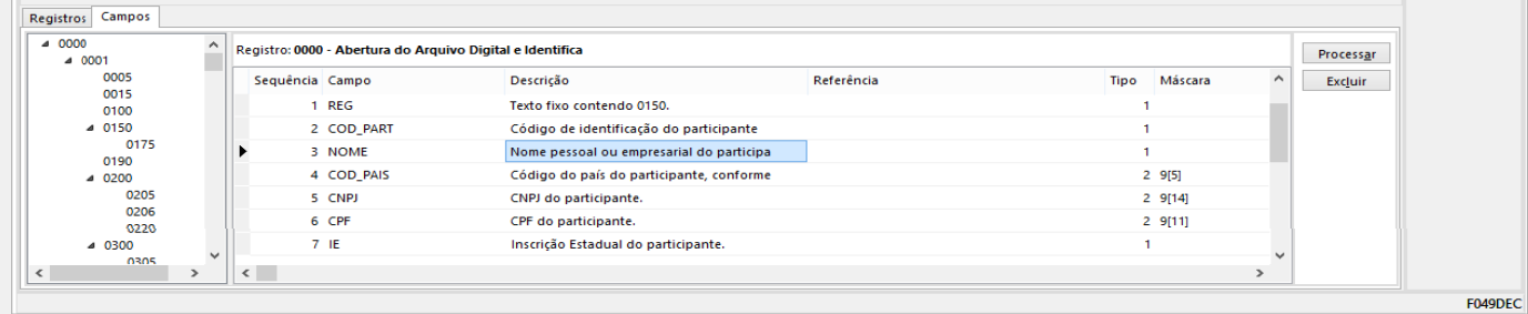Por meio do cadastro de declarações também é possível fazer pequenas alterações em campos e registros selecionados por meio dos comandos SQL executados, sejam eles padrões ou customizados. Para isso, utilize a nomenclatura correta de cada campo dos registros, conforme a tela F049DEC.