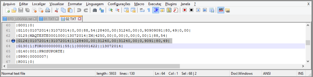 - Assim, o registro G126 será gerado conforme a regra