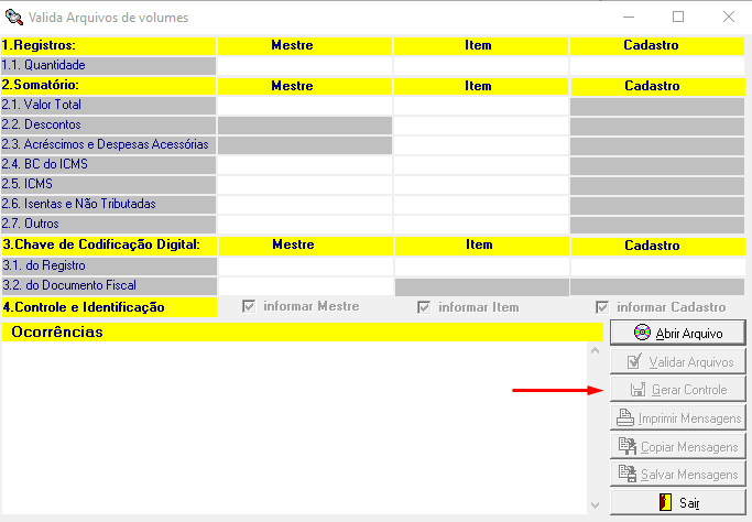 Este registro é gerado pelo programa validador de notas por meio do botão Gerar Controle: