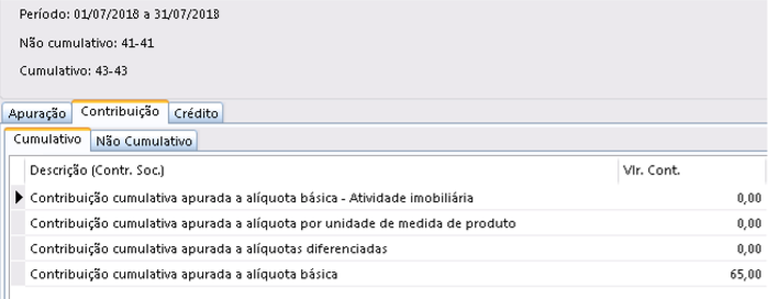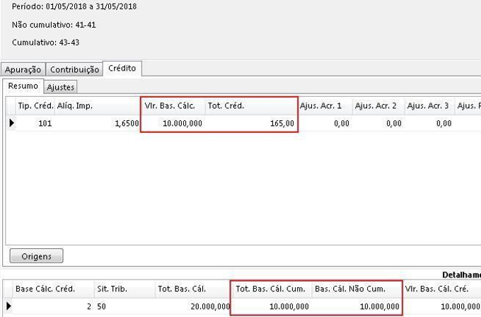 O Gestão Empresarial | ERP faz a proporção de crédito conforme a venda não cumulativa. Dessa forma, o valor para crédito cumulativo é 10.000: