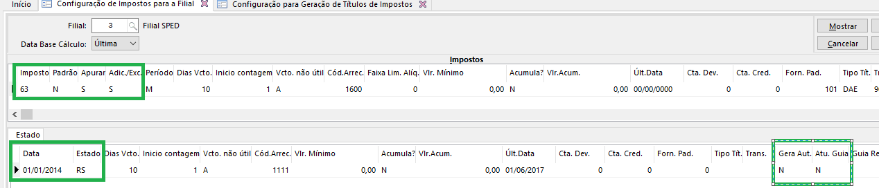 5. Configuração para geração de títulos de imposto