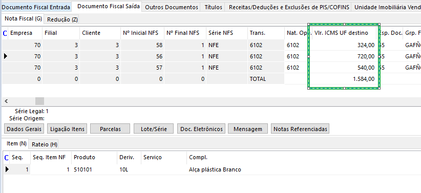 A apuração irá gerar um valor total do DIFAL; para gerar o registro E316 com as guias das notas fiscais e a diferença da apuração, utilize a regra abaixo:
