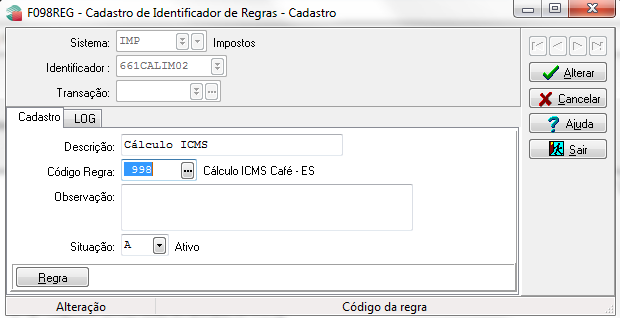 Ativar o identificador de regras IMP-661CALIM02 e associar a regra abaixo.