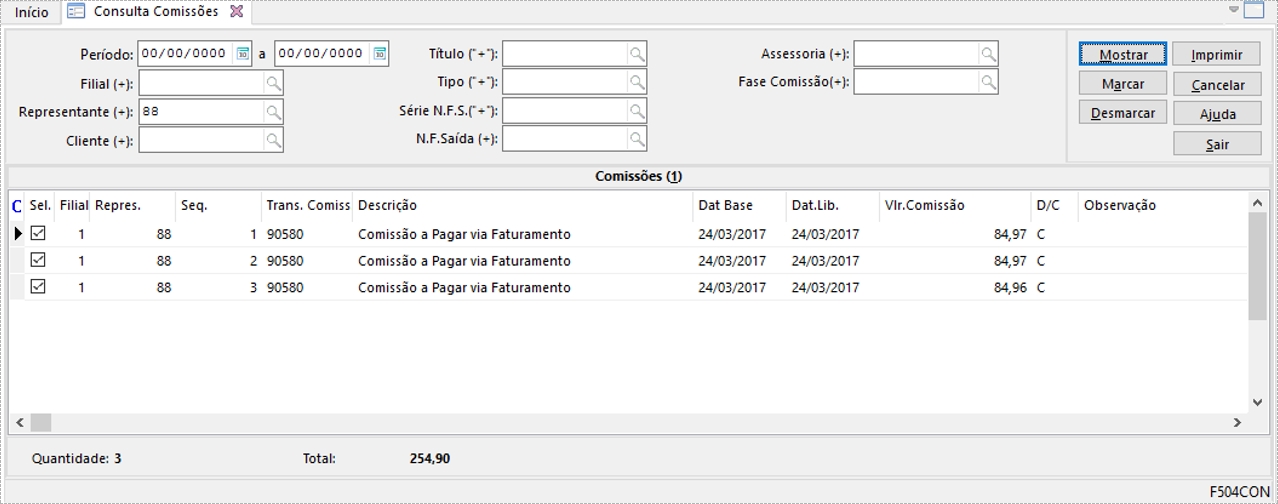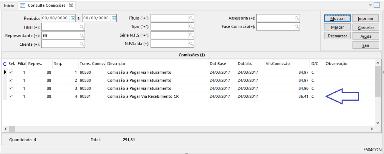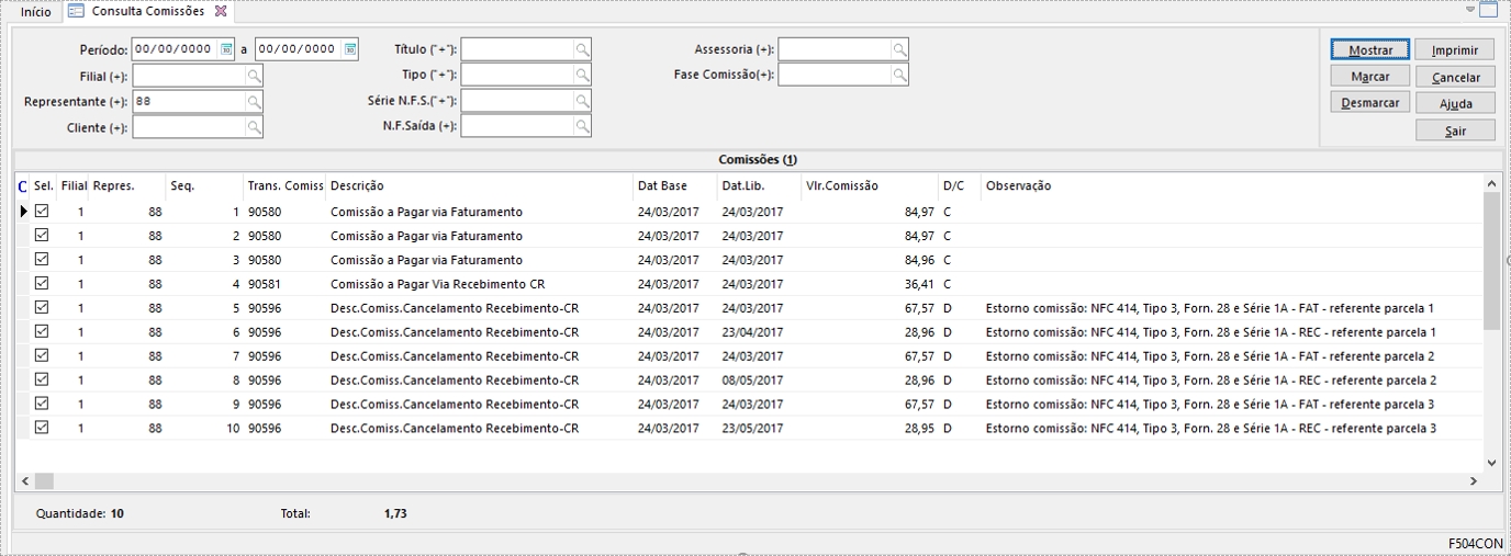 | F504CON-1 | Permite utilizar outro modelo de consulta de título de comissões. |