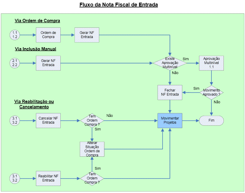 Fluxograma - Projetos - Notas Fiscais Entrada