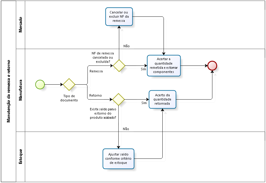 O retorno da remessa indica que o processo produtivo realizado pelo terceiro está finalizado. Ou seja, os produtos terceirizados são devolvidos à empresa, juntamente com a nota fiscal de cobrança do serviço e o retorno dos componentes utilizados.