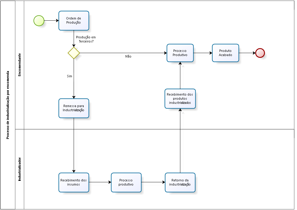Abaixo detalhamos o fluxo da terceirização em envio e retorno da remessa de industrialização.