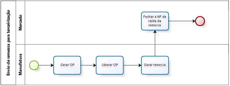 A geração da nota fiscal de remessa caracteriza o processo em que os componentes/produtos são enviados para o terceiro, que realiza o processo produtivo.
