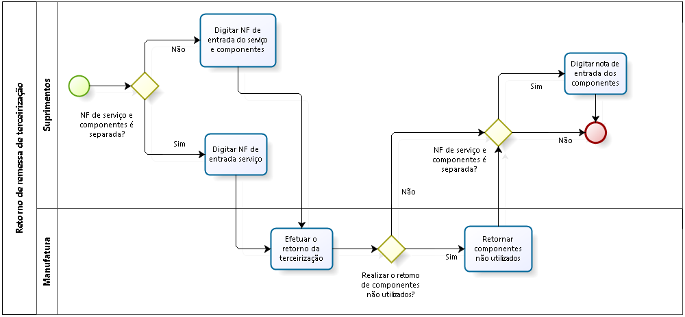 Antes da digitação da nota fiscal de entrada dos componentes ocorrer, é necessário que o retorno da terceirização, bem como o retorno dos componentes não utilizados, sejam realizados.