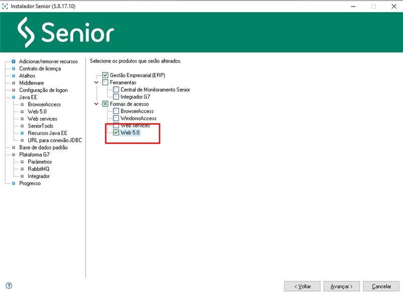 - Em Formas de acesso, marque a opção Web 5.0 e clique em Avançar: