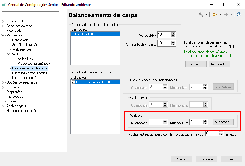 - Em Balanceamento de Carga, informe a Quantidade. Para mais informações, acesse a documentação da Tecnologia.