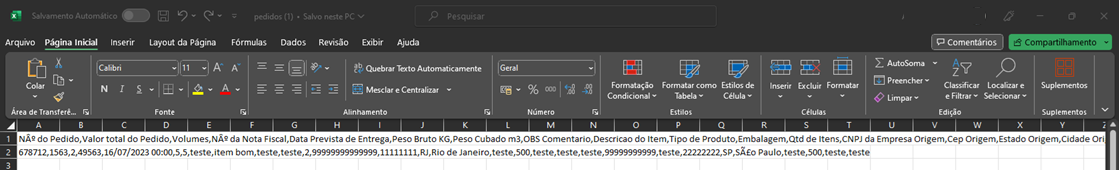 Se o arquivo estiver com a estrutura correta, os pedidos serão carregados na Plataforma de Fretes e ficarão disponíveis para serem utilizados na criação de uma Oferta de Frete.