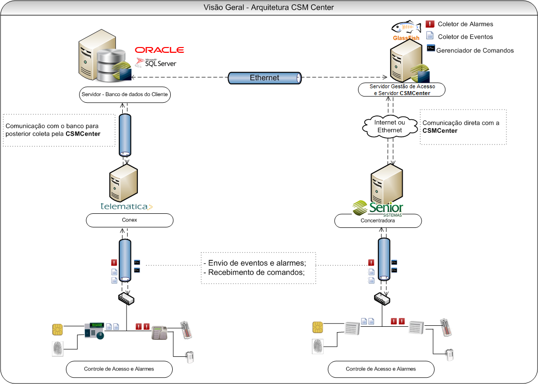 O diagrama abaixo exemplifica a comunicação e a relação da CSM Center com os demais componentes da solução: