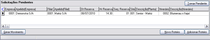 solicitações pendentes, passando a aparecer no quadro de roteiros. Aqui