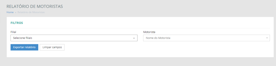 Para gerar o relatório e exporta-lo para uma planilha, é necessário preencher Filial, onde será exportados todos os motorista da filial selecionada, ou o nome do Motorista.