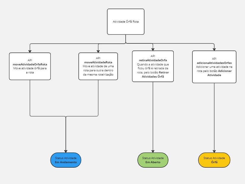 - Órfã: são as atividades que estão inseridas em uma roteirização mas não se enquadraram em nenhuma rota (não atingiram a capacidade do veículo ou se enquadram em alguma restrição).
