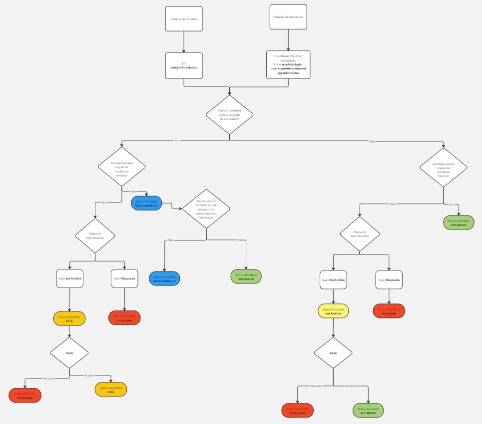 - Finalizado: são as atividades que possuem apontamento de ocorrência como finalizada ou podem estar dentro de uma rota finalizada mas sem ocorrência ou inicialmente tinham o status em análise e a ação tomada foi recusar, tornando ela finalizada.