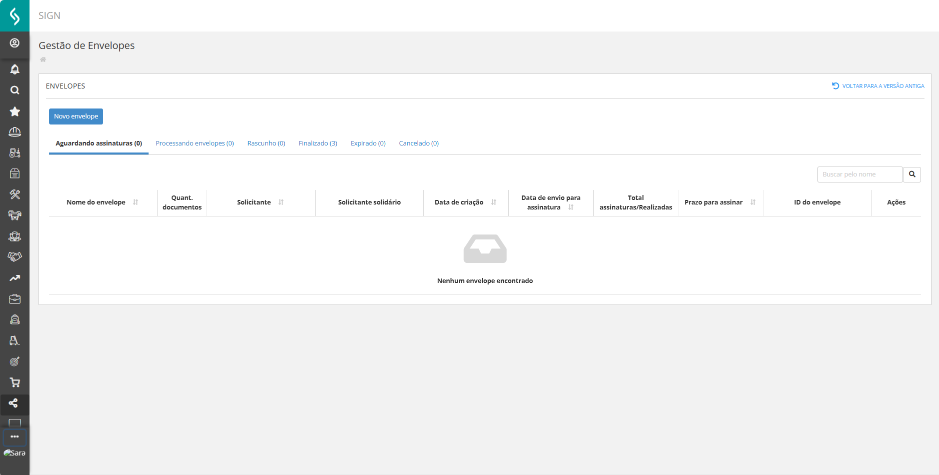 Local: Senior Flow > SIGN > Gestão de Envelopes > Acessar nova Gestão de Envelopes