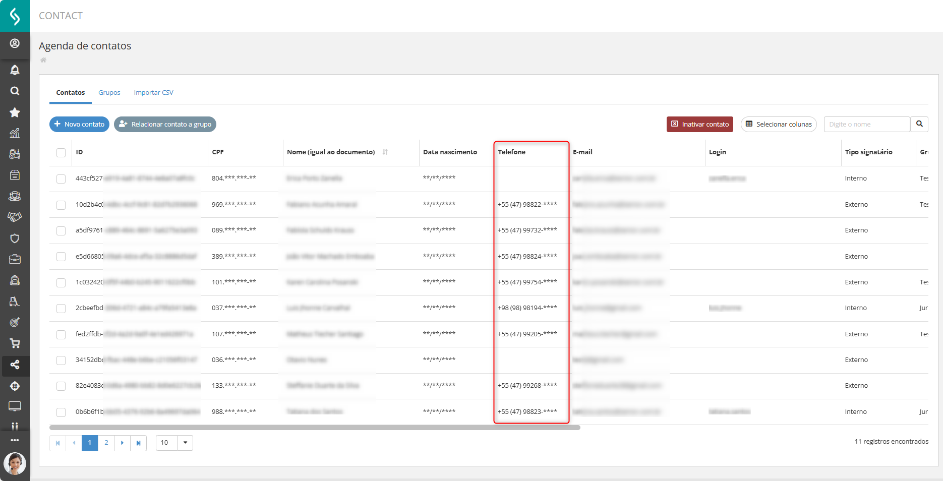 Local: Senior Flow > SIGN > Agenda de Contatos