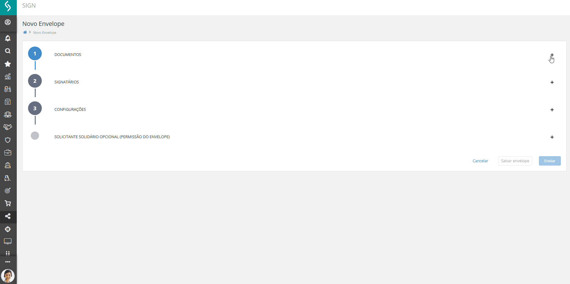 O coração do SIGN ficou ainda mais eficiente: o fluxo de criação de envelopes foi modernizado para tornar o processo mais rápido, simples e intuitivo.