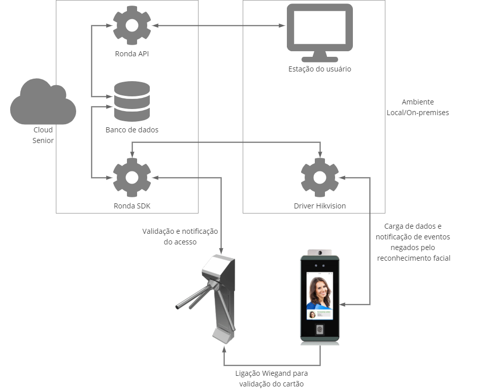 Essa integração e comunicação com os equipamentos Hikvision é realizada através de APIs REST, disponibilizadas pelo próprio fabricante. Através delas, o Ronda senior X realiza o sincronismo de dados, como fotos e cadastro das pessoas.