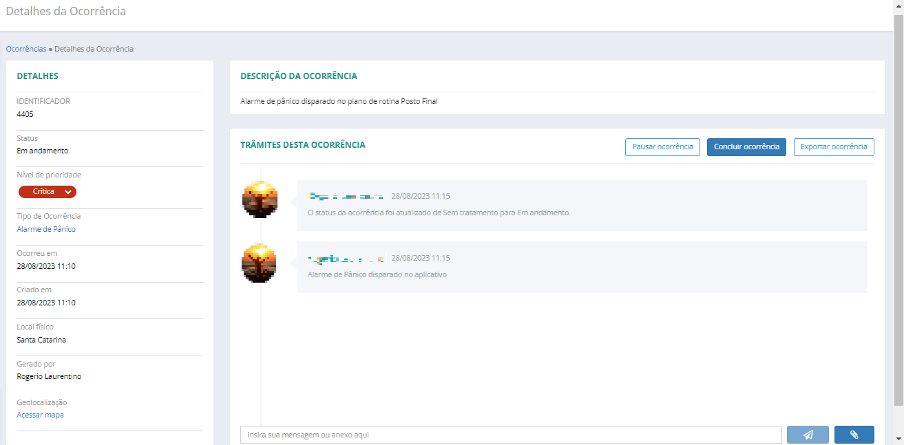 - Acessar os detalhes de uma ocorrência específica : clique sobre a ocorrência e ela será aberta em uma nova tela. A partir disso, ela poderá inclusive ser tratada ;