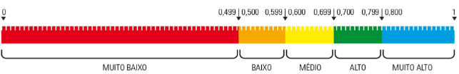 O índice varia de 0 a 1. Quanto mais próximo de 1, maior o desenvolvimento humano. Referência: