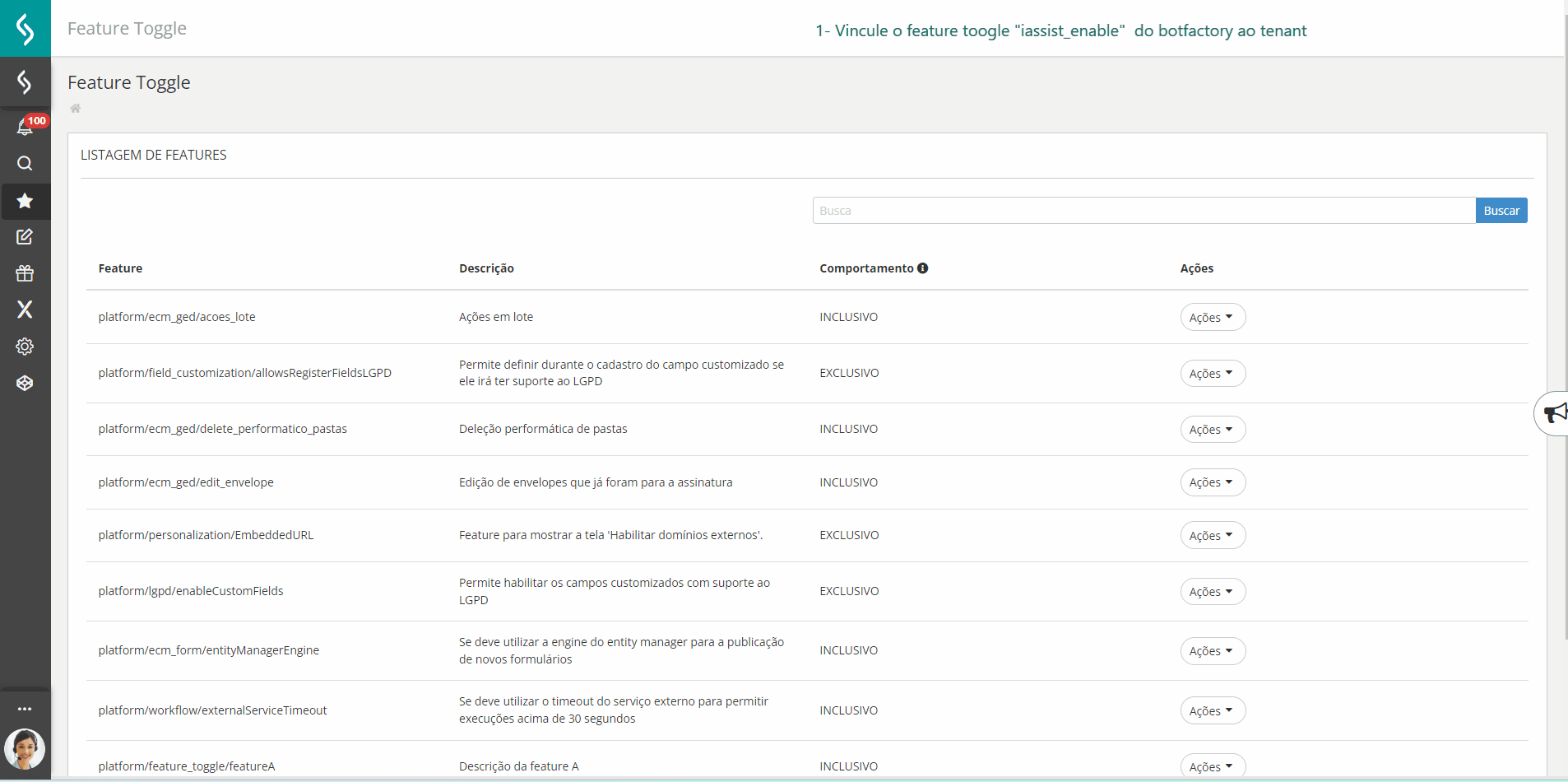 - Uma árvore de diálogo pode ter um ou mais nós com integração IAssist, desde que respeitadas as regras acima;