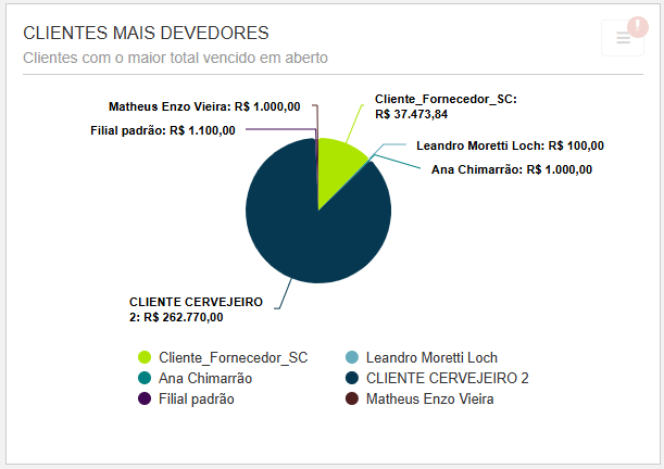 Exibe um gráfico demonstrando os clientes com maiores totais vencidos em aberto.