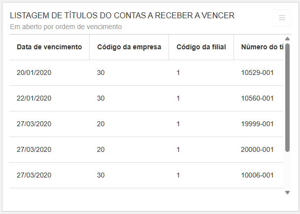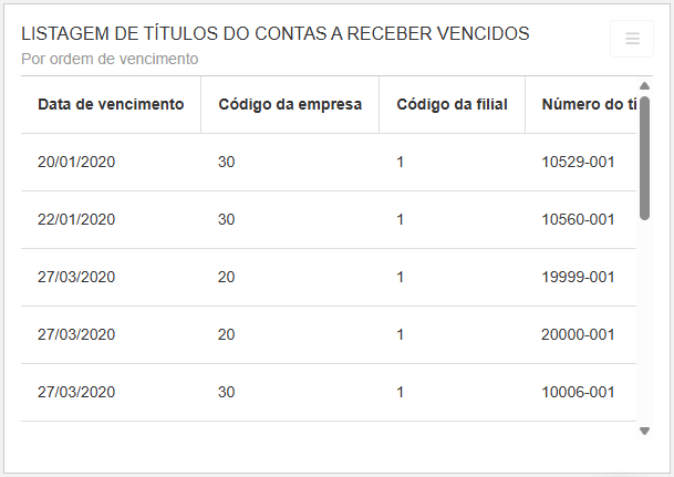 Lista ordenada dos títulos do contas a receber com vencimento em aberto.