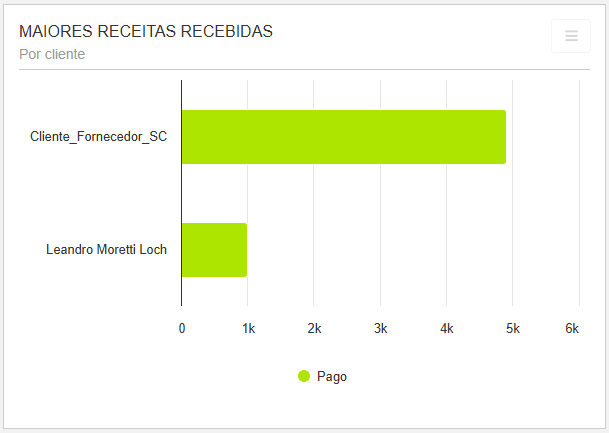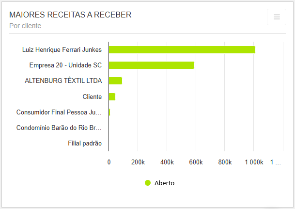 Exibe um gráfico com os maiores valores a receber, ordenado por cliente.