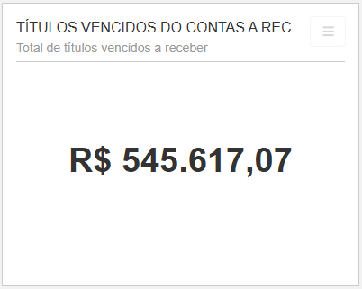 Apresenta o valor total dos títulos do contas a receber vencidos.