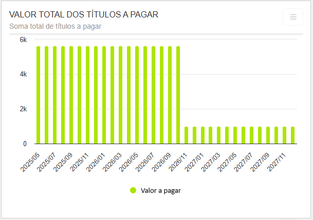 Apresenta um gráfico, por período, com a soma total de títulos a pagar.