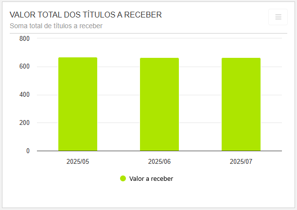 Apresenta um gráfico, por período, com a soma total de títulos a receber.