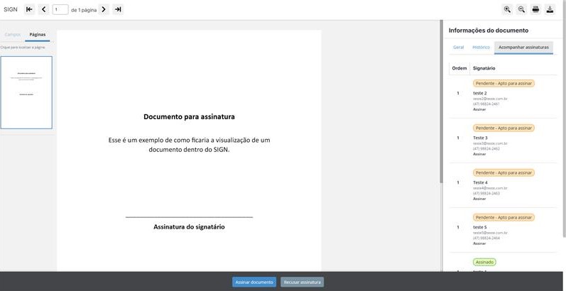 - Através do botão Signatário